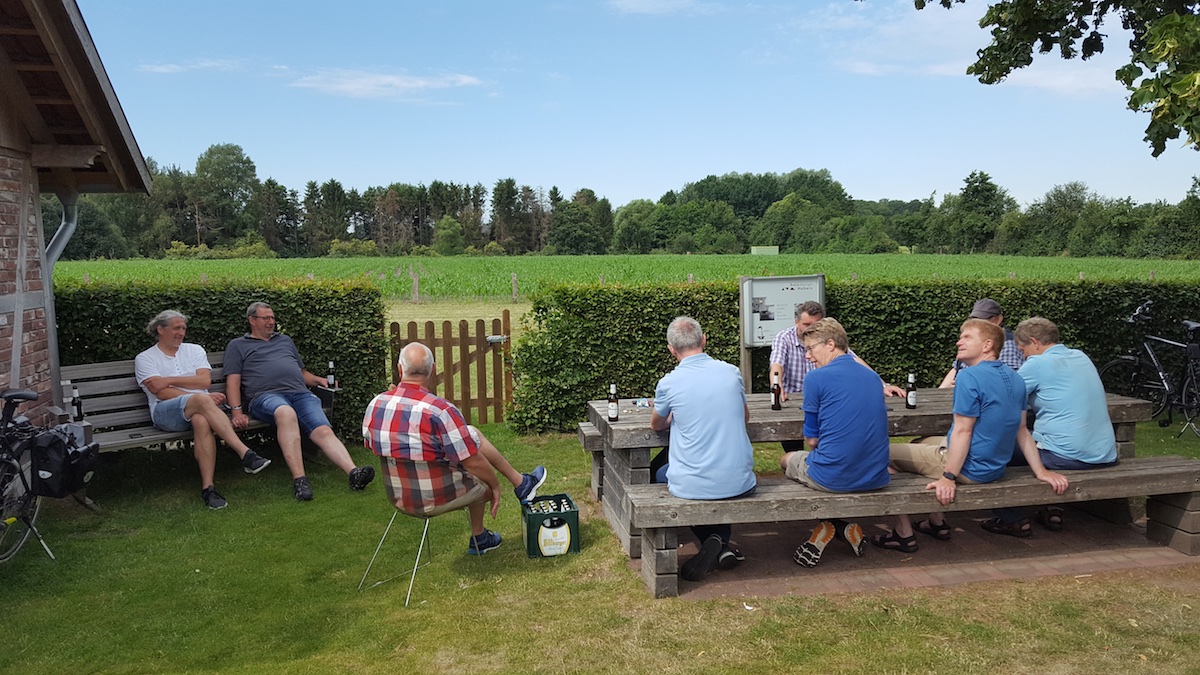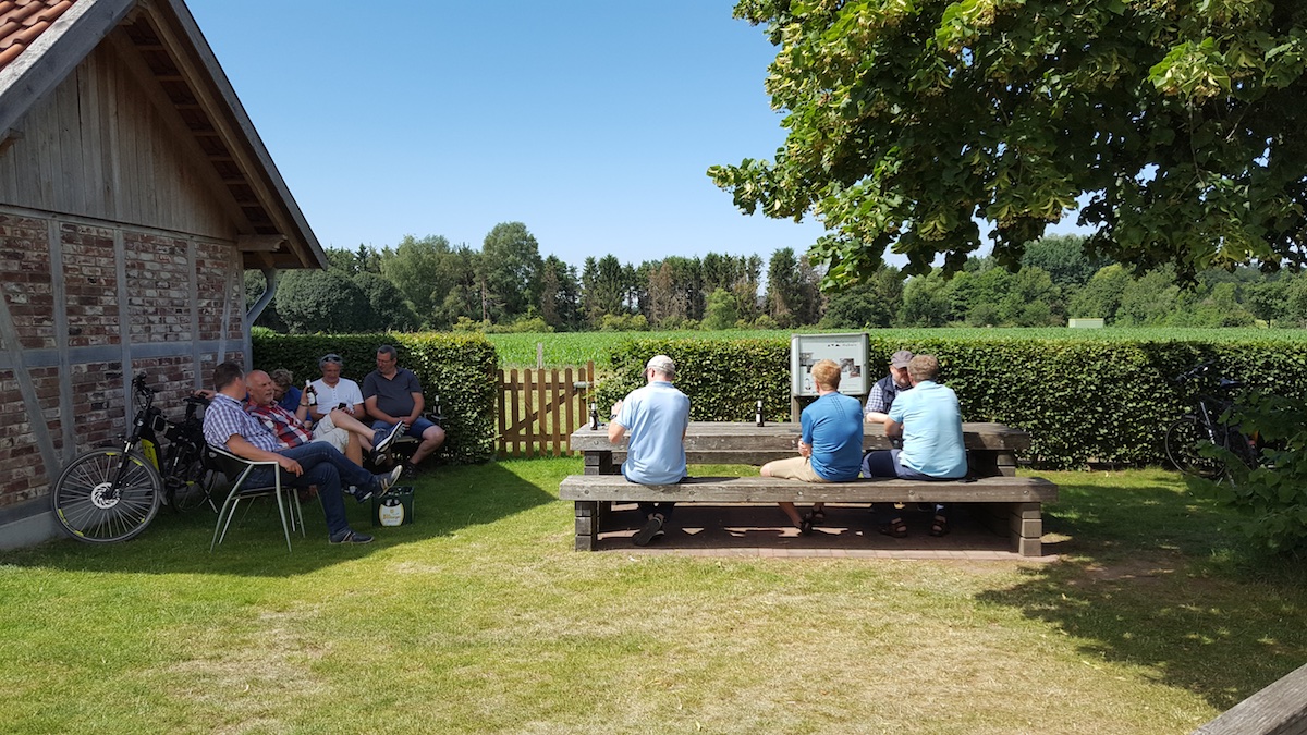 Treffpunkt Habers Mühle mit Frühstück - weiter nach Vennebauer - Teilung der Gruppe in Encks Biergarten und Dannys Garten -